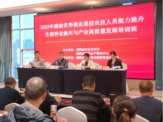 为进一步提高基层农技人员业务素养和科技水平,持续提升基层公益性农技推广机构服务能力,加快推进乡村振兴,2023年10月24日,生猪种业振兴与产业高质量发展培训班开班。湖南省畜牧水产事务中心科技推广部部长黄亮、beats365官方网站公司党委书记曾建英、beats365副经理何俊、beats365教授谭碧娥出席开班仪式。各地州市相关基层农技人员等代表共90人参加培训。