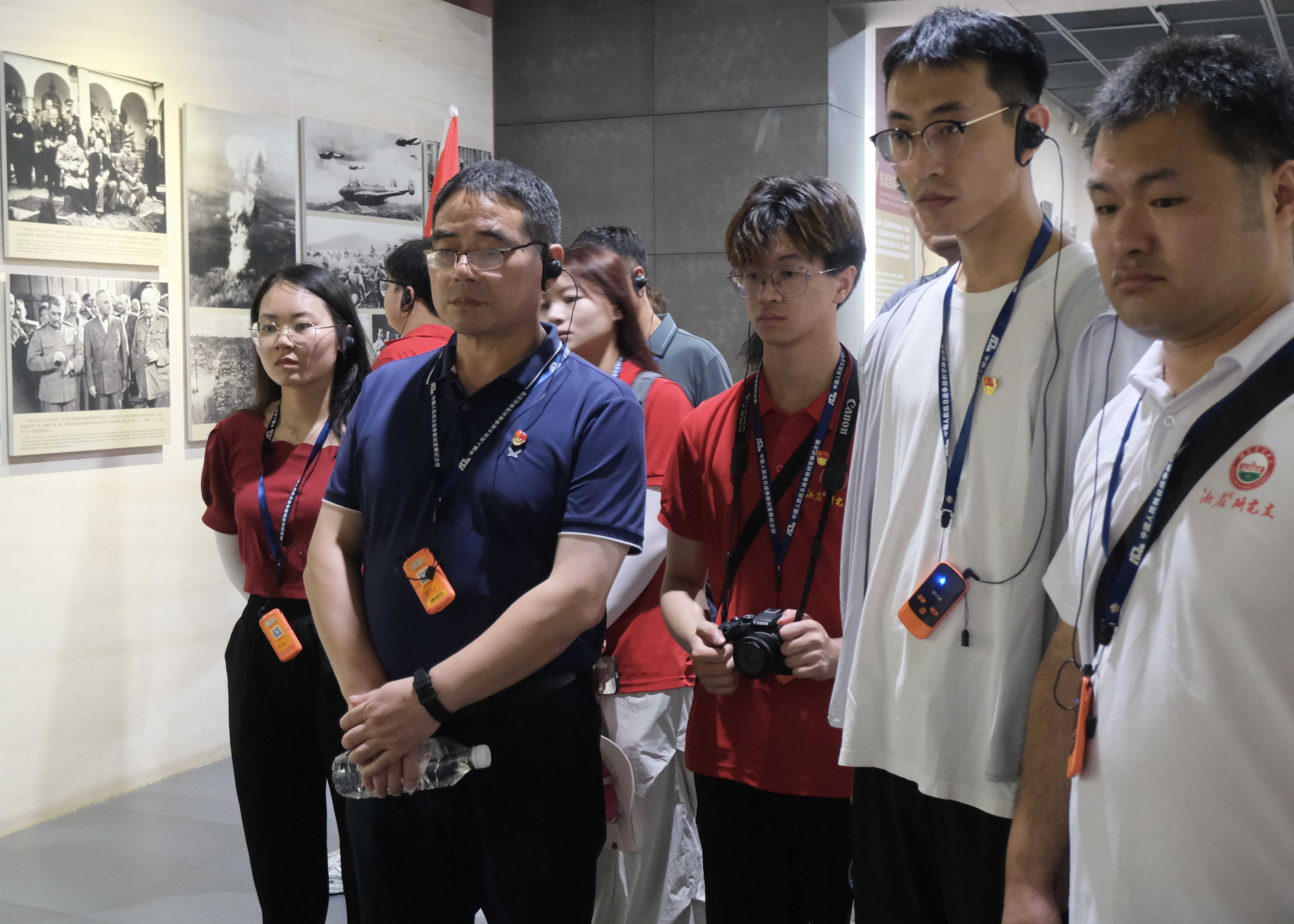 在湖南抗战胜利纪念馆,伴随着讲解员深情的叙述,党员代表和博士团缓步于馆内的历史长廊,纪念馆内的历史氛围感染了每一位到访者,他们或驻足凝视,或低声交流,感受着抗战时期三湘大地上的壮烈情景。