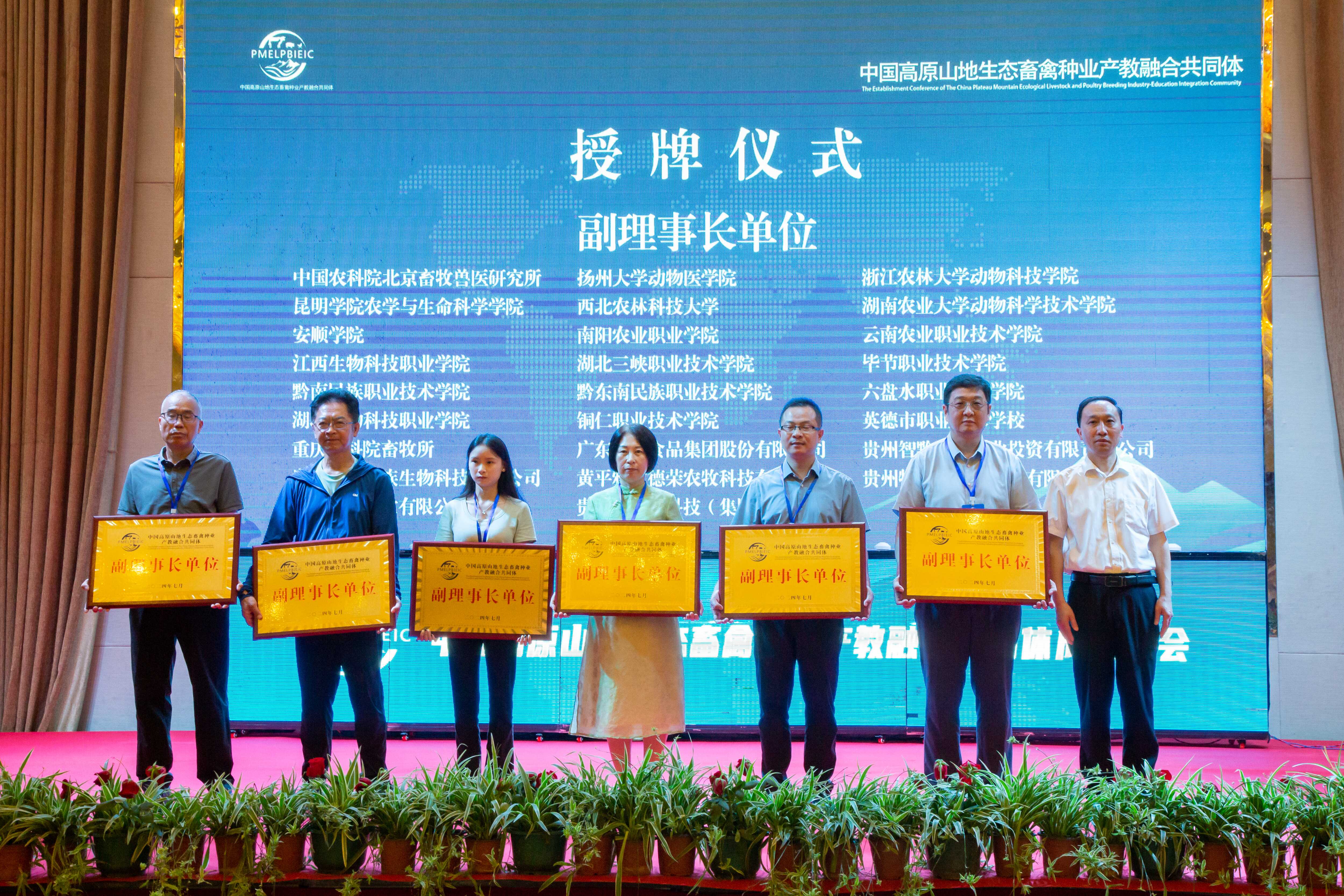 会议表决通过了共同体章程,表决通过了理事长单位、副理事长单位、常务理事单位、理事单位。beats365被选为中国高原山地生态畜禽种业产教融合共同体副理事长单位,范志勇代表公司接受了副理事长单位授牌。