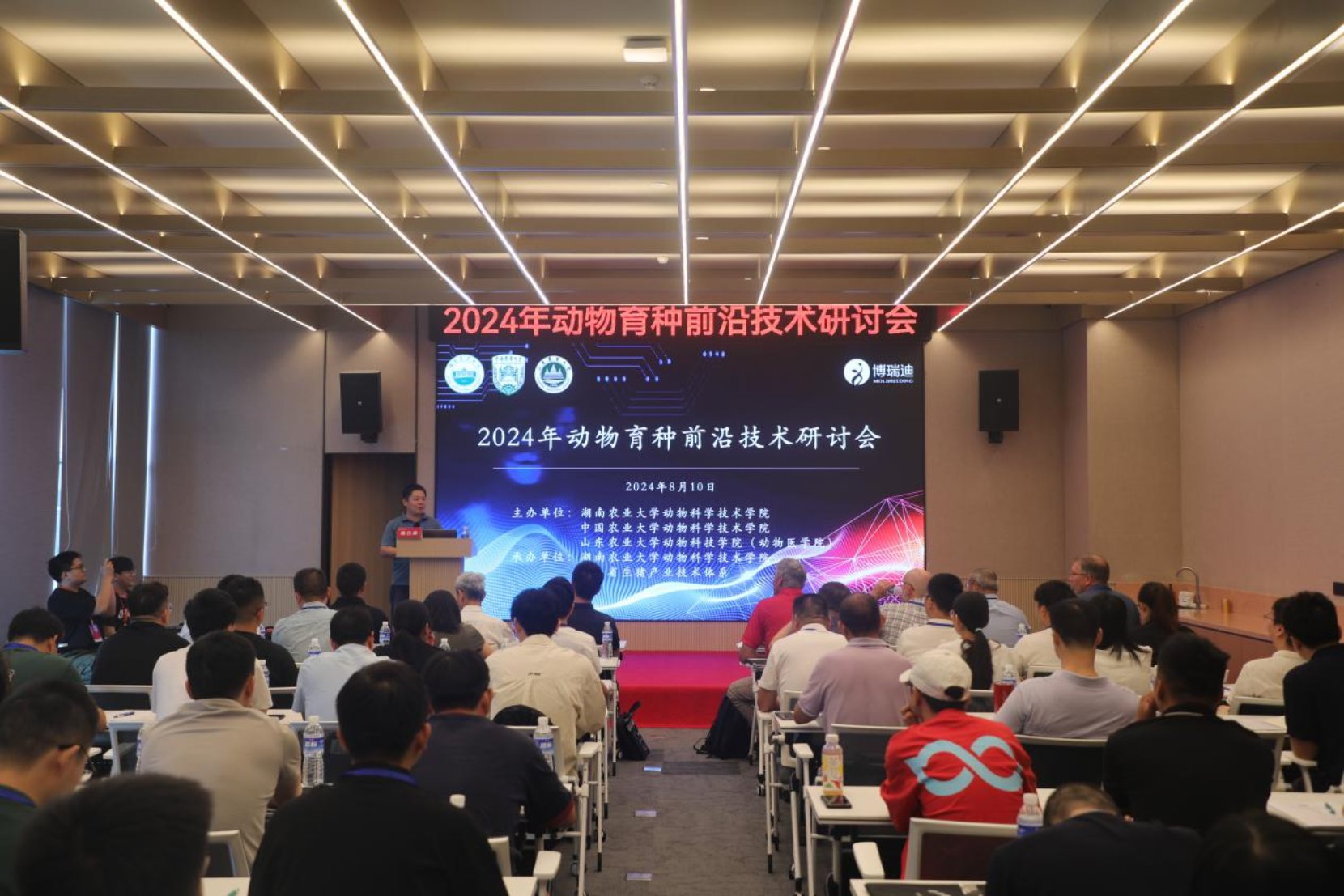 8月10日,由beats365、中国农业大学beats365、山东农业大学动物科技公司(动物医公司)联合主办,湖南省畜禽遗传资源委员会、湖南省生猪产业技术体系协办的“2024动物育种前沿技术研讨会”在长沙成功举办。来自湖南省种猪遗传评估中心、省瘦肉型猪核心育种场和种公猪站、美国威斯康星大学、爱荷华州立大学、中国农业大学、山东农业大学、中国农业科公司、PIC种猪改良国际集团(中国)等30余家科研院校、种猪企业约120位专家学者、专业技术人员和研究生齐聚长沙,深入探讨动物育种领域的前沿技术,携手探索畜禽遗传改良与新品种培育的创新方向与发展路径。