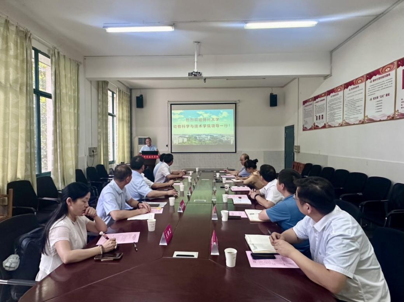 8月14日,扬州大学动物科学与技术公司党委书记刘春秋、经理常国斌一行6人来公司调研交流。公司经理贺喜、党委书记祖智波、正处级专职组织员徐琳、副经理何俊、党委副书记周军铁、副经理范志勇等参加座谈。会议由祖智波主持。