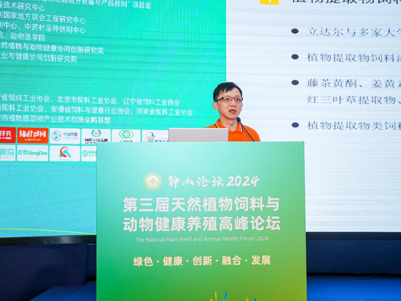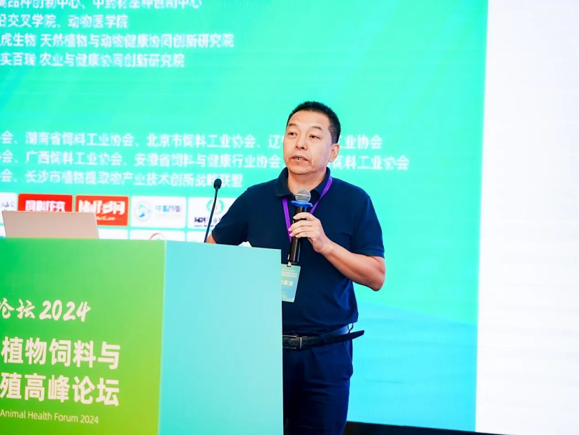 广州立达尔生物科技股份有限公司赵剑技术总监就《植物提取物在养殖增效上的应用效果》主题进行了分享。赵总开始分享公司在植物提取物饲料添加剂领域的研究成果,展示了辣椒素、水飞蓟宾等如何提升动物养殖效率和健康水平,并通过实例证明了在实际应用中的经济效益。