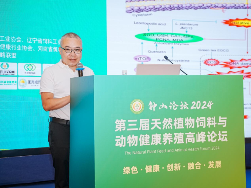 南京农业大学王恬教授作了题为《植物提取物的抗氧化活性及其在健康养殖中的应用研究》的报告。王教授从养殖生产中的氧化应激、天然植物提取物的抗氧化功能、健康养殖中植物体提取物的抗氧化应用这3个方面作了精彩的分享。