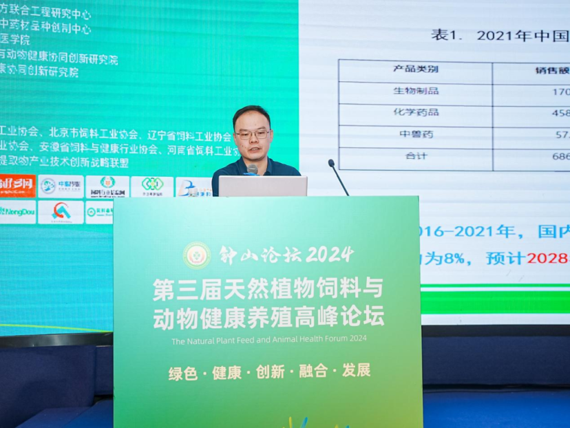 湖南美可达生物资源股份有限公司刘华技术总监分享了《兽用中药博落回系列产品创制及其在健康养殖中的应用》主题报告,首先,刘总概述了兽用中药的概念演变,指出“中兽药”到“兽用中药”的转变,以更准确地表达动物用中药的含义,避免与“西兽药”的误解。详细介绍了博落回系列产品的创制过程。探讨了博落回系列产品在动物生产中的实际应用,并对未来进行了总结与展望。