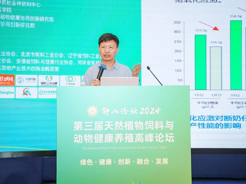 印遇龙院士带来了《新的植物精油作用机理及在养猪生产上的应用》的前沿分享。印院士在报告中介绍植物精油在健康养猪生产中的应用前景,分析了畜禽养殖面临的细菌、病毒病挑战及抗生素滥用问题,阐述了植物精油的功能与作用机制,介绍了其在猪业中的应用进展,展望了植物精油在促进健康养猪、减少抗生素依赖方面的广阔前景。