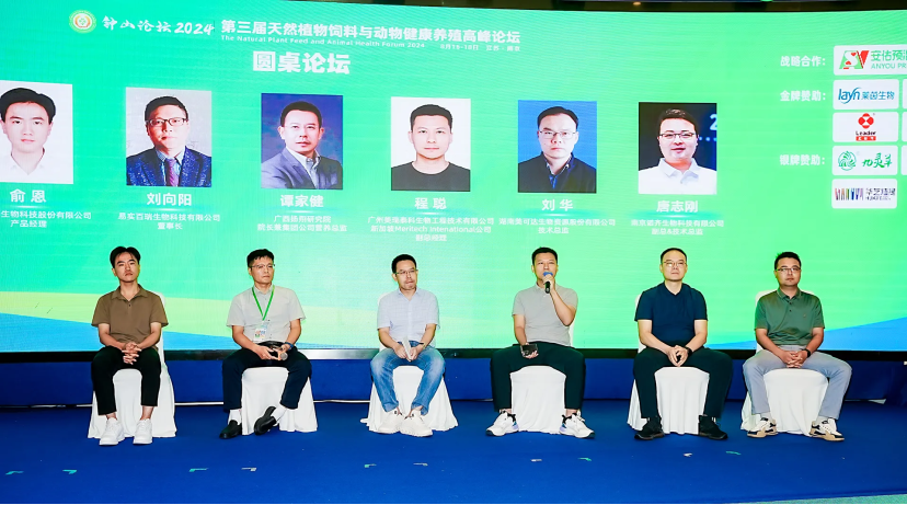 会议期间,还举行了圆桌论坛,由安佑集团预混料事业部禽料技术总监李伟主持。广西扬翔研究院谭家健经理、广州美瑞泰科生物工程技术有限公司和新加破Meritech intenational 公司程聪副总经理、桂林莱茵生物科技股份有限公司俞恩产品经理、易实百瑞生物科技有限公司刘向阳董事长、湖南美可达生物资源股份有限公司刘华技术总监以及南京诺齐生物科技有限公司唐志刚技术总监共同参与。