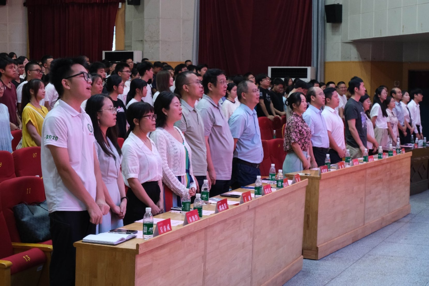 在全体师生齐唱国歌声中,开学典礼正式开始。