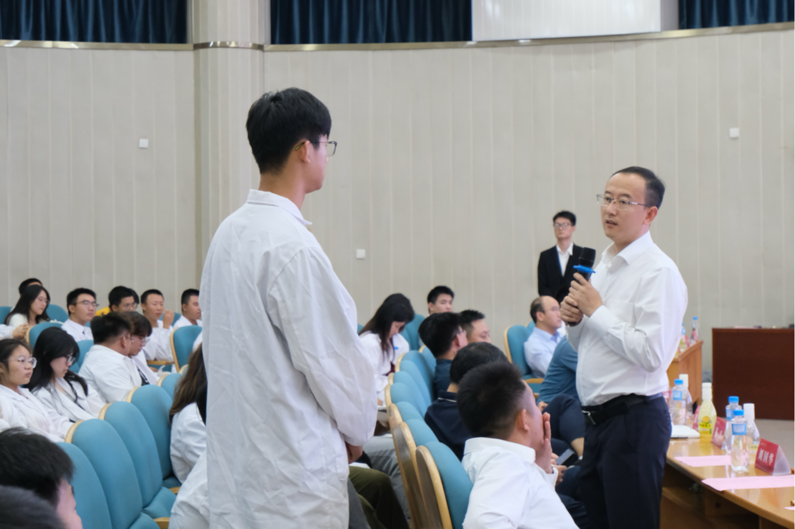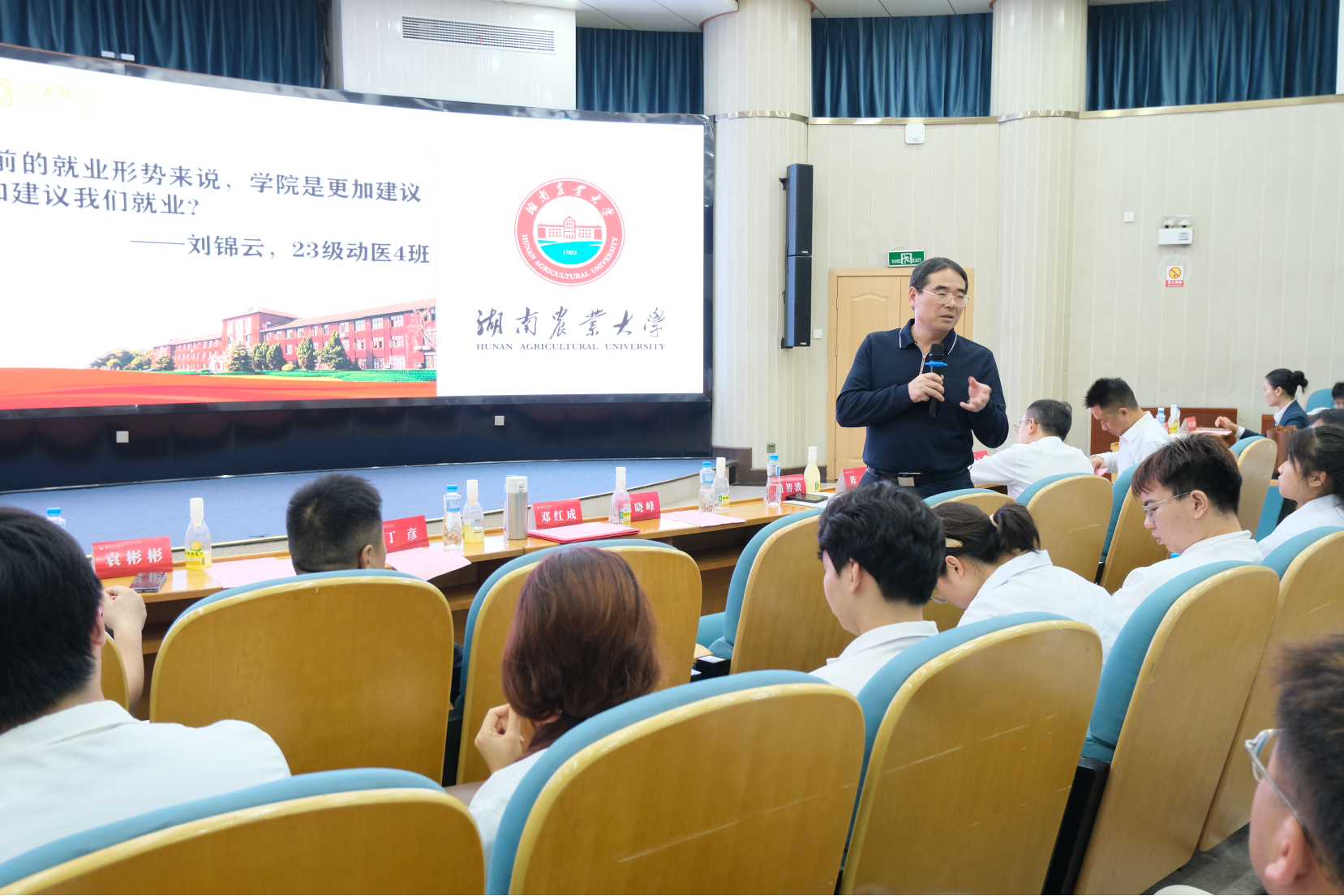在课堂互动环节,同学们结合当前大环境下畜牧业面临的巨大挑战,提出就业形势会有哪些变化、作为新时代畜牧人在毕业后该选择读研深造还是投身生产一线等问题。与会嘉宾耐心答疑解惑,结合实例向同学们传授学习经验。