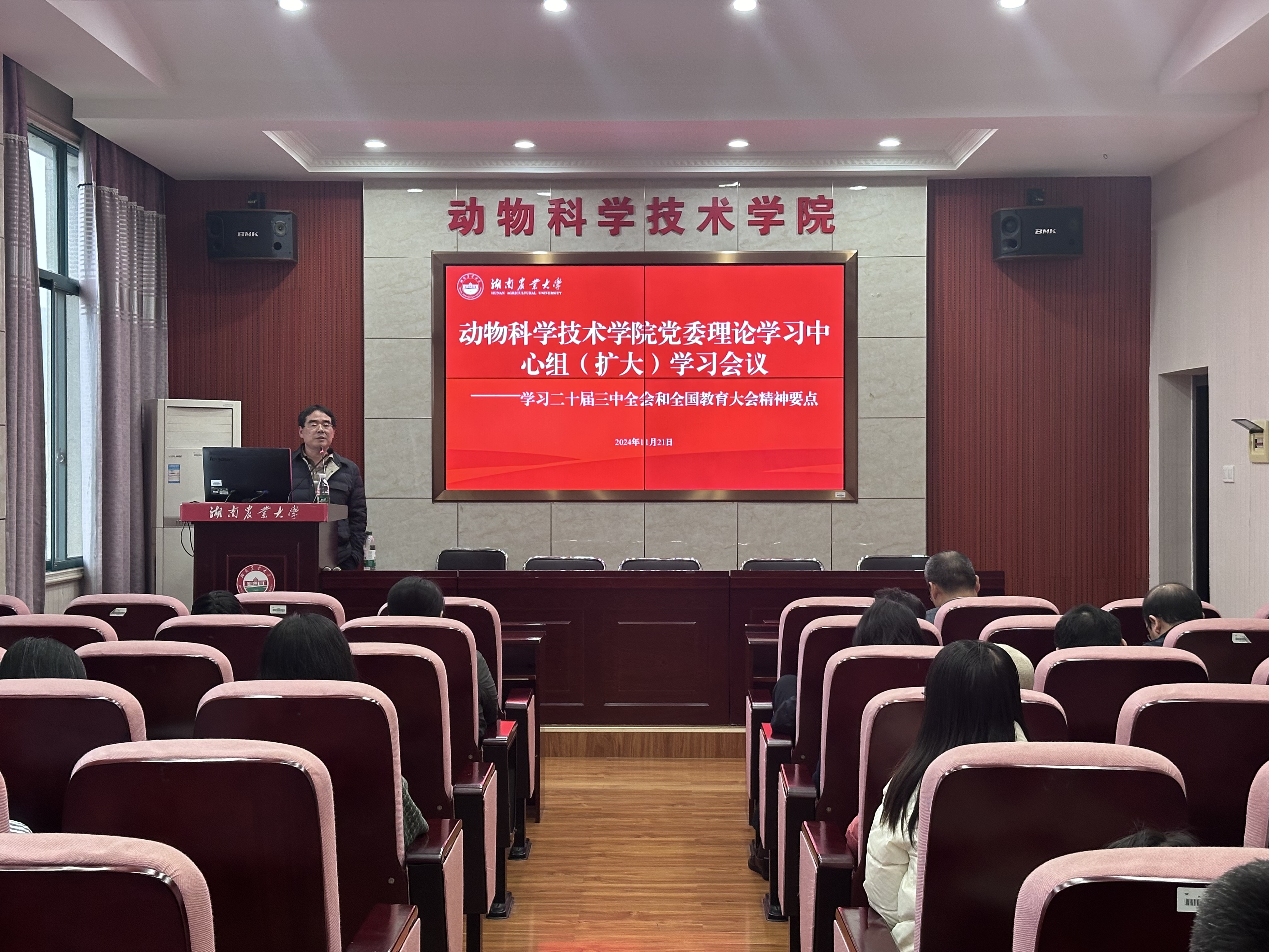 祖智波领学了二十届三中全会和全国教育大会精神要点,重点传达了11月11日公司召开的推进教育科技人才体制机制一体改革动员大会精神。他指出,学习贯彻好二十届三中全会和全国教育大会精神是当前和今后一个时期的重大政治任务。全院上下要深入学习领会二十届三中全会和全国教育大会精神,入脑入心,准确把握其核心要义和实质精神。同时要紧紧围绕立德树人根本任务,深刻把握教育的政治属性、人民属性、战略属性。要立足公司、公司的特色和优势,紧扣国家重大战略和经济社会发展需要,进一步聚焦公司制度建设、人才培养模式创新、核心课程建设、教学、科研团队建设、人才队伍建设等方面,进一步整合资源、凝聚力量、补齐短板;充分发挥人才聚集效应,推进大团队、大平台建设,对接湖南千亿产业,谋划国家级成果奖、国家级科研平台、“十五五”重点研发计划、杰青和优青等重大项目。全院教师要时刻铭记教书育人的使命和立德树人的初心,深化思想认识,加强师德师风建设,坚定理想信念、陶冶道德情操、涵养扎实学识、勤修仁爱之心,矢志躬耕教坛,大力弘扬践行教育家精神,争做“经师”和“人师”相统一的“大先生”,以过硬的专业能力、渊博的知识水平、深沉的仁爱之心,着力培养复合型拔尖创新人才,承担起为中国式现代化培育时代新人的重任。