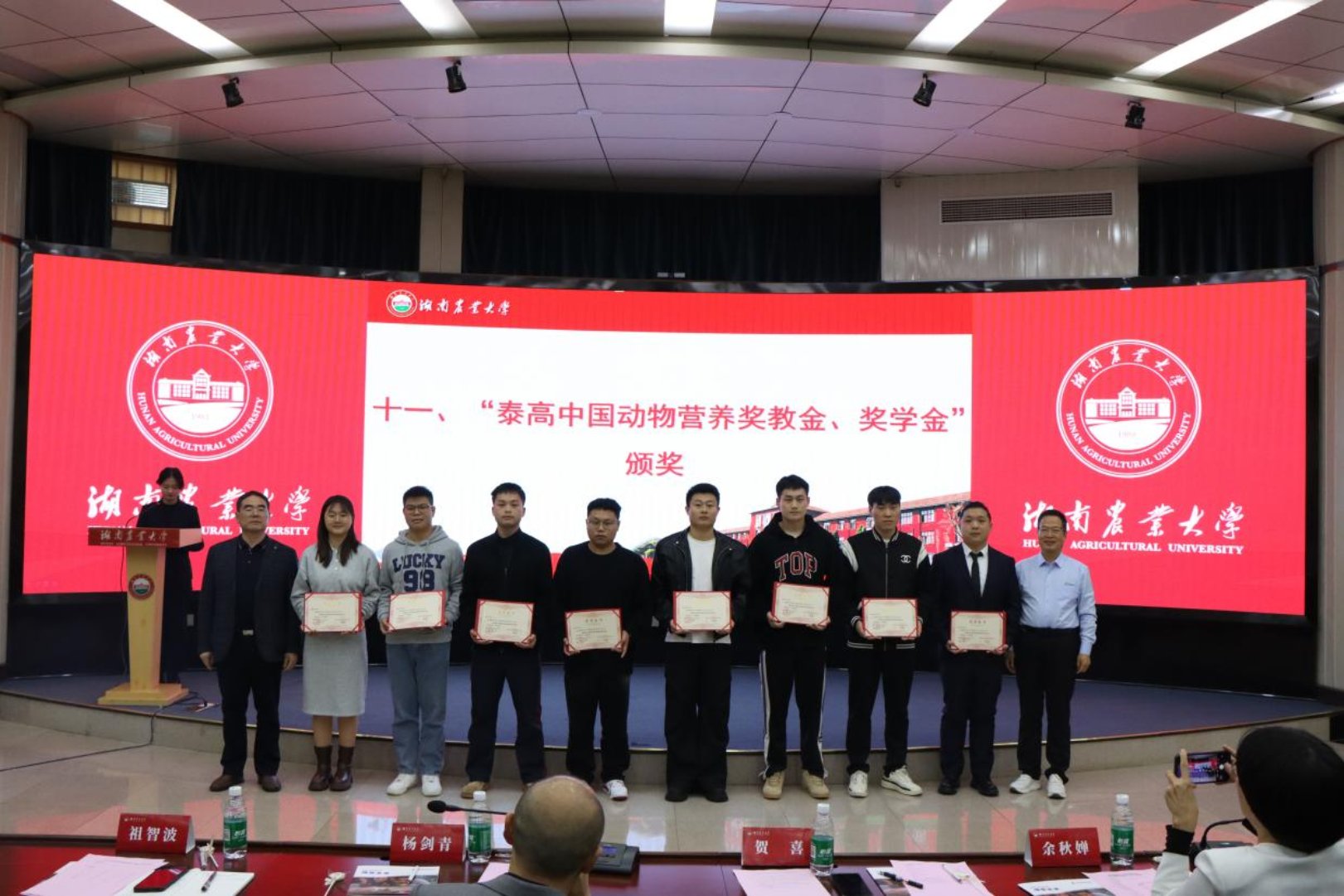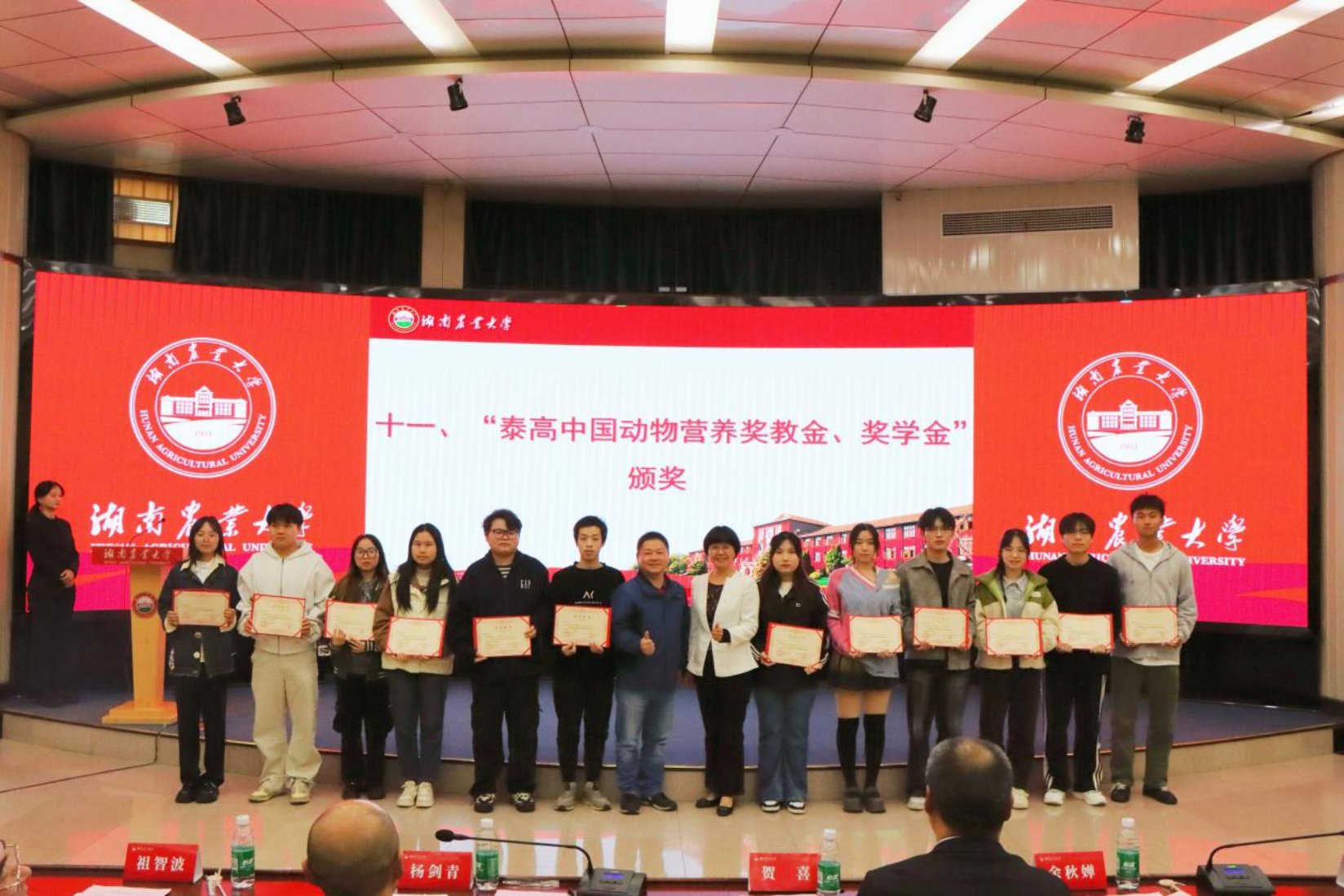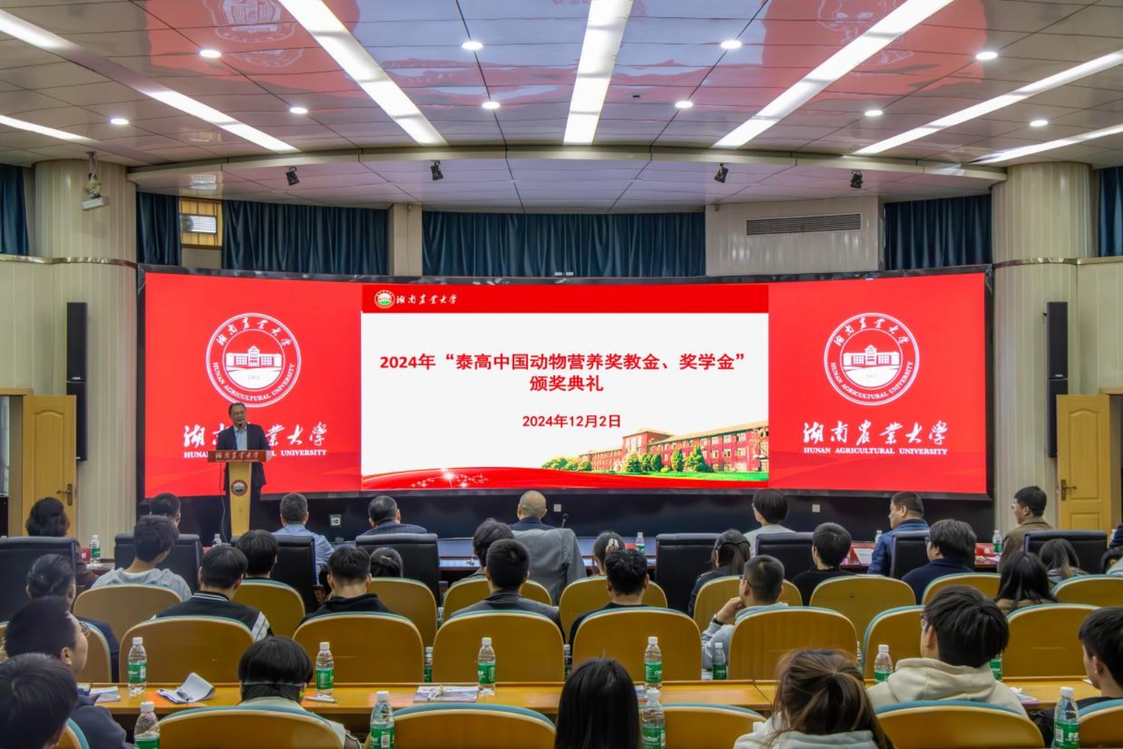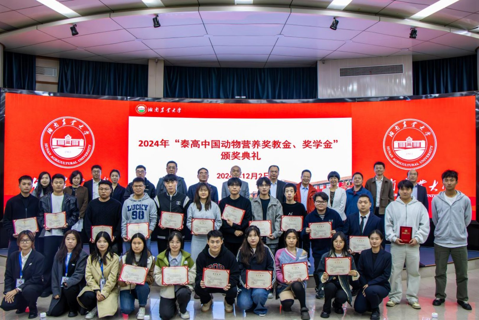 为积极推动校企融合发展,搭建坚实合作桥梁,助力员工清晰了解专业知识的实际应用以及未来广阔的就业前景,12月2日下午,beats365在生命科学楼国际会议厅举行2024年“泰高中国动物营养奖教金、奖学金”颁奖典礼。泰高集团中国总经理杨剑青、中国区人力资源总监余秋婵、技术市场总监石满仓及企业相关负责人、beats365经理贺喜、党委书记祖智波、副经理何俊、党委副书记周军铁、副经理范志勇以及公司学工办全体辅导员、全体获奖师生以及各班员工代表参加了颁奖典礼。