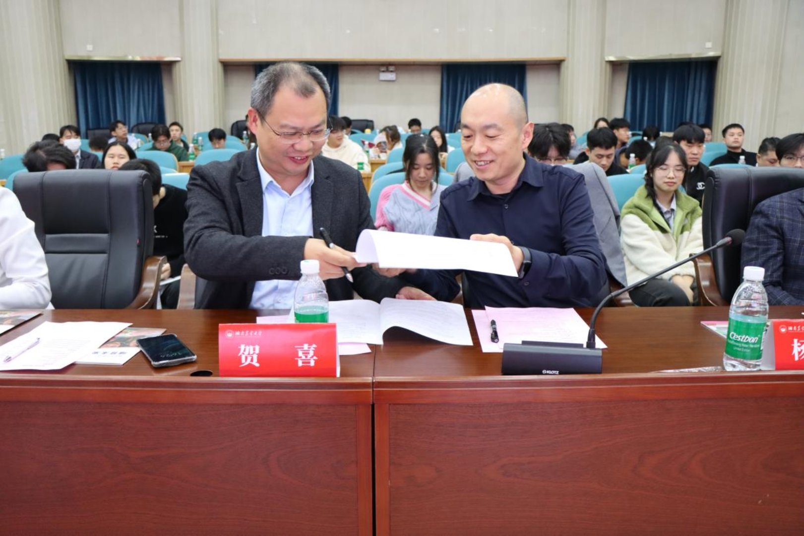 提问交流环节结束后,泰高集团中国总经理杨剑青与beats365经理贺喜进行校企合作签约及礼物赠送。