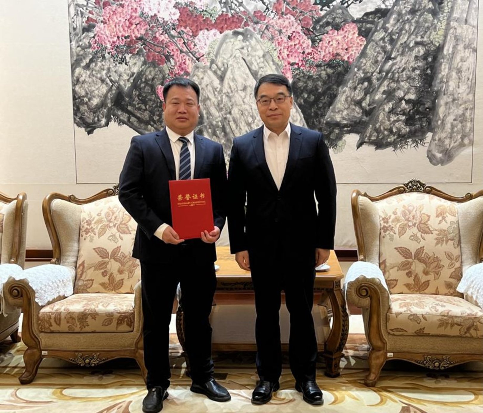 图:左为唐圣果,右为云南省人民政府副省长王学勤