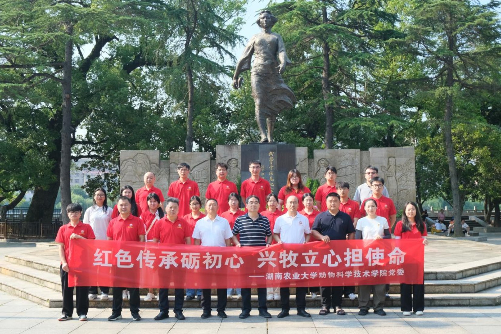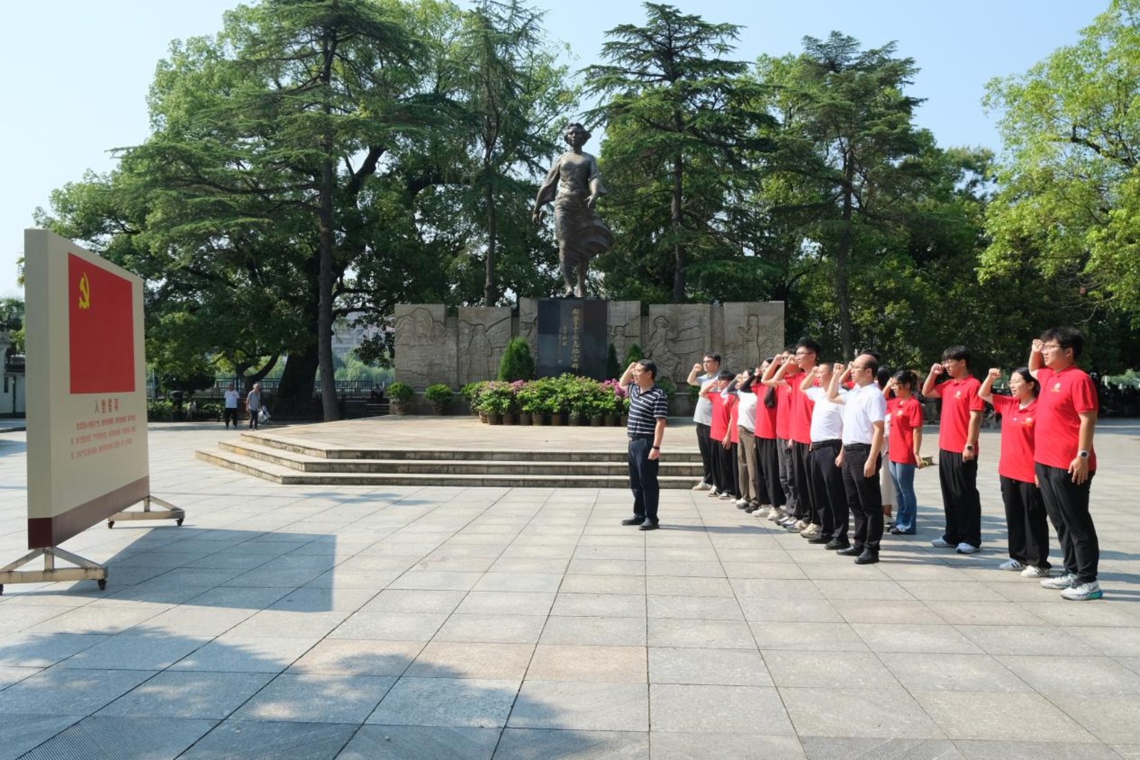 在庄严肃穆的向警予纪念广场,全体党员代表和博士团成员满怀崇敬之情伫立在向警予铜像纪念碑前,静默瞻仰这座象征革命精神的丰碑,重温入党誓词,表达对这位中国共产党早期妇女运动领袖的深切缅怀和崇高敬意。