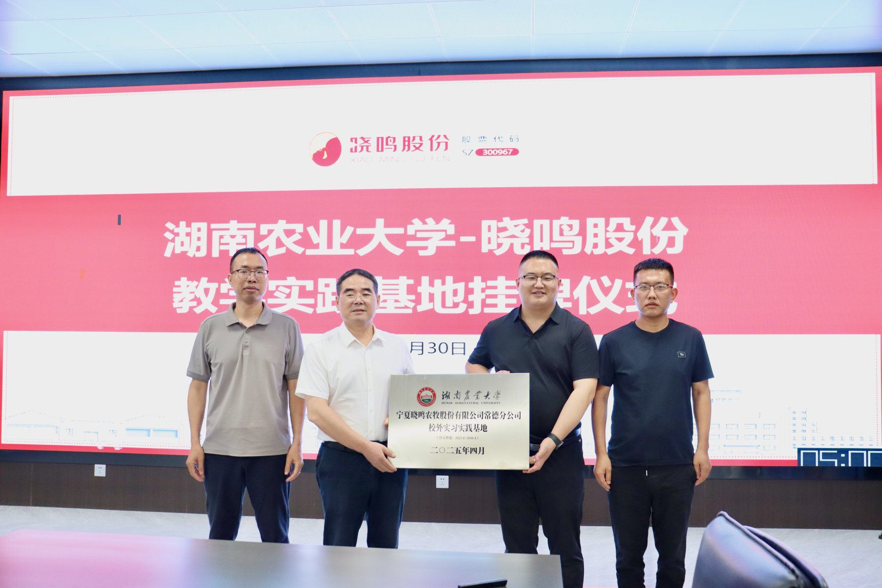 随后公司领导为宁夏晓鸣农牧股份有限公司常德分公司授予“beats365官方网站校外实习实践基地”牌匾,为公司技术管理人员颁发“校外指导教师”聘书并签署就业合作意向书。