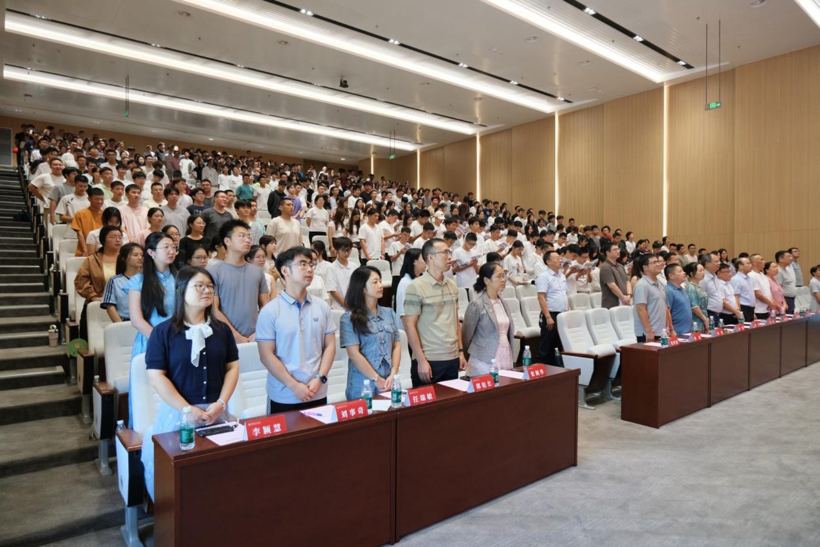 开学典礼在全体与会人员齐唱国歌中拉开帷幕。