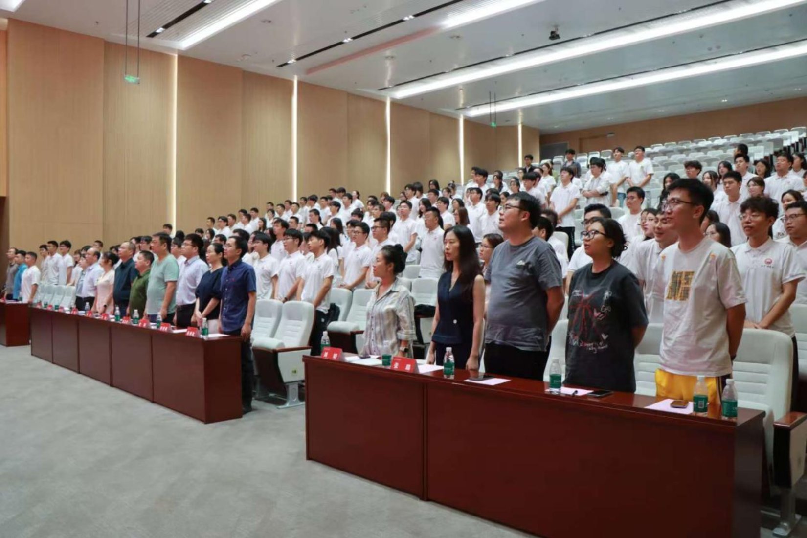 开学典礼在全体与会人员齐唱国歌中拉开帷幕。