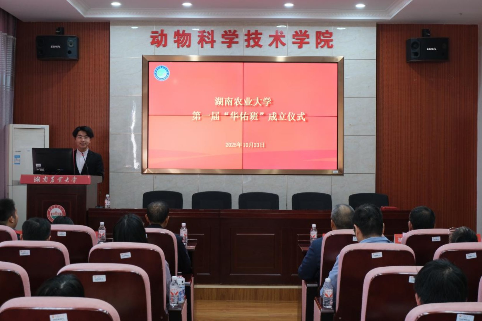 贺喜代表公司致辞。他指出,当前畜牧养殖、动物育种领域正处于转型升级关键期,市场对高素质、强实践、善创新的专业人才需求迫切,“华佑班”的成立,是校企资源共享、优势互补的生动实践,即通过打破传统课堂边界,将企业实际需求融入教学全过程,学员不仅能学习系统理论,还能走进企业参与实践,实现知识与产业需求的精准对接,为行业培育复合型人才。