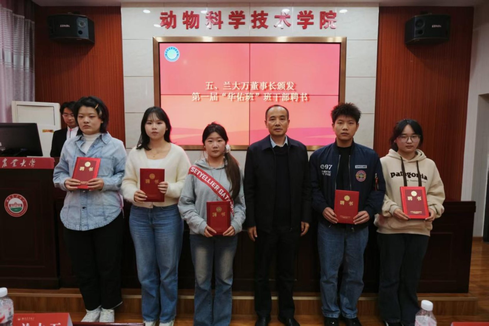 兰大万为第一届“华佑班”班干部颁发聘书。