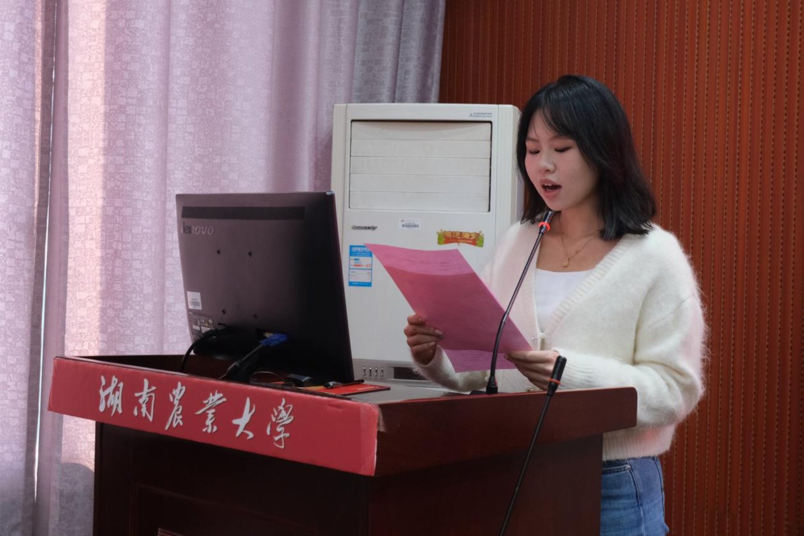 许裕晗同学作为第一届“华佑班”学员代表上台发言。她坦言“华佑班”为大家搭建了从理论到实践的桥梁,未来,她将带着问题主动钻研,以“员工的踏实+职场人的担当”,早日成长为能为畜牧业发展“添砖加瓦”的专业人才。