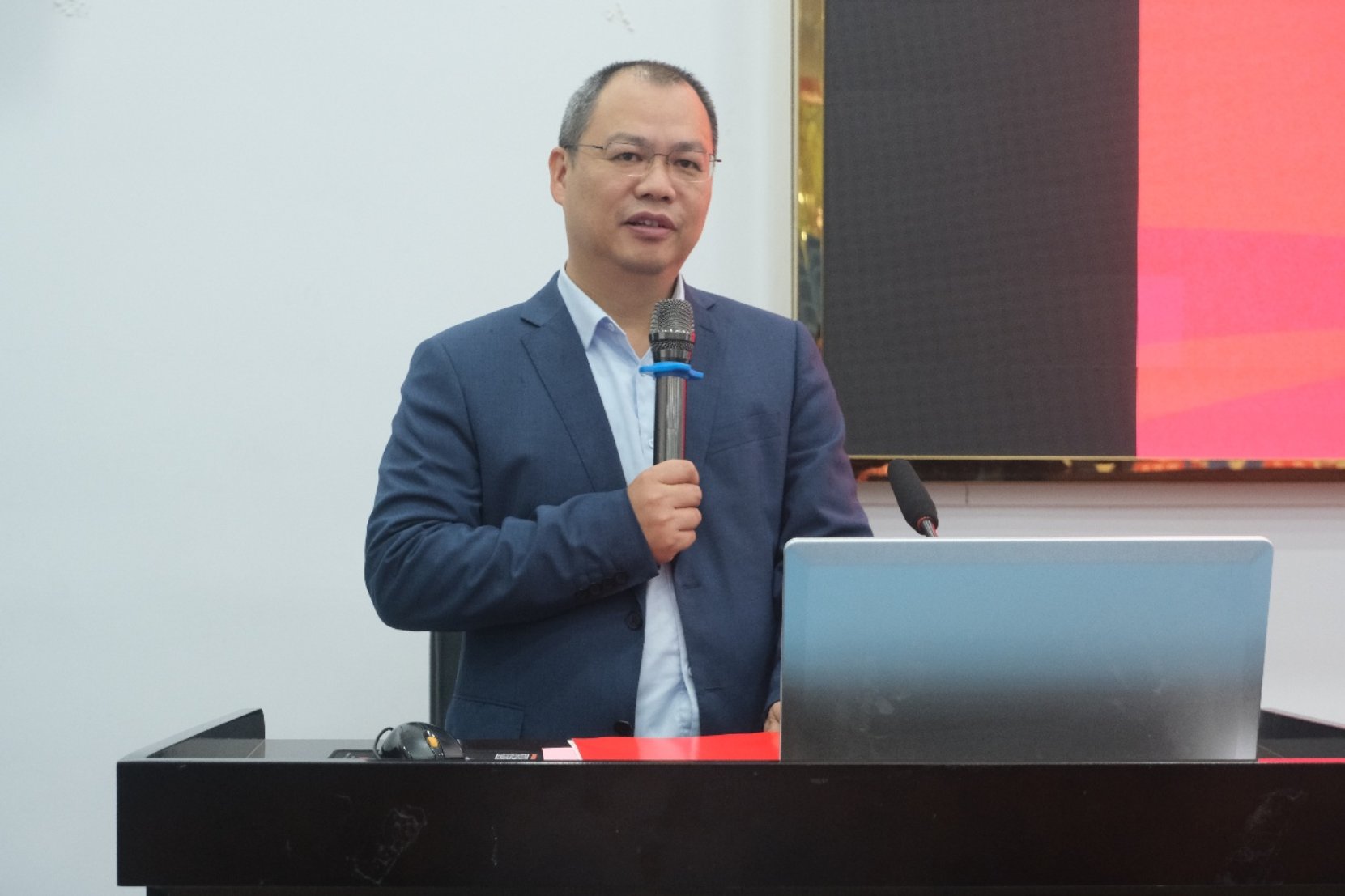 在师生问答环节,专任教师代表伍树松老师就“优久班”员工提出的老员工创业相关问题,向“优久班”员工传授老员工创业经验,他提及员工应当认真学习知识,找准行业问题,挖掘自身兴趣,并与行业特色结合。