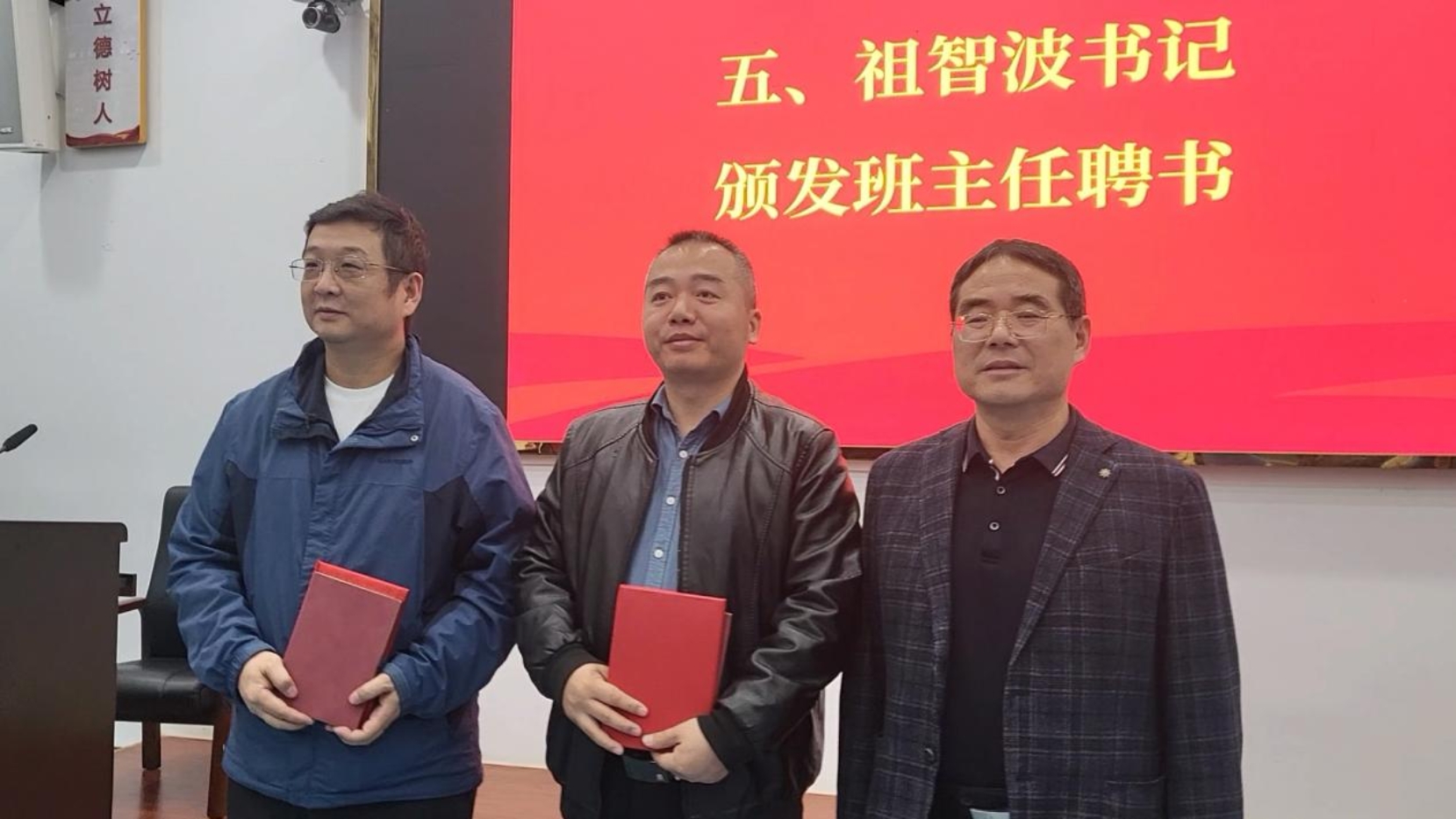 祖智波为范志勇、刘文辉颁发首届“优久班”班主任聘书。