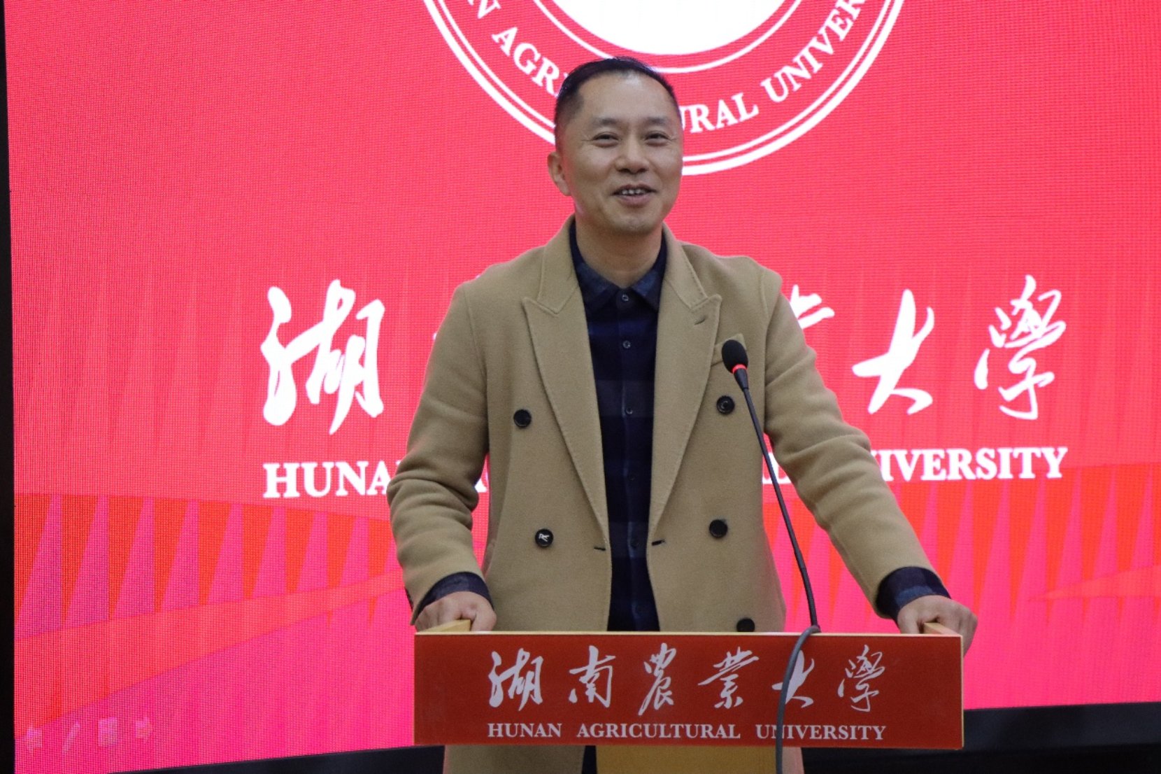 吴买生代表湖南三淼农业发展有限公司发言。他指出当前行业在优质品种选育、非常规饲料开发与环保养殖等方面仍面临挑战,鼓励同学们扎根专业、学以致用,在解决实际产业问题中实现价值。