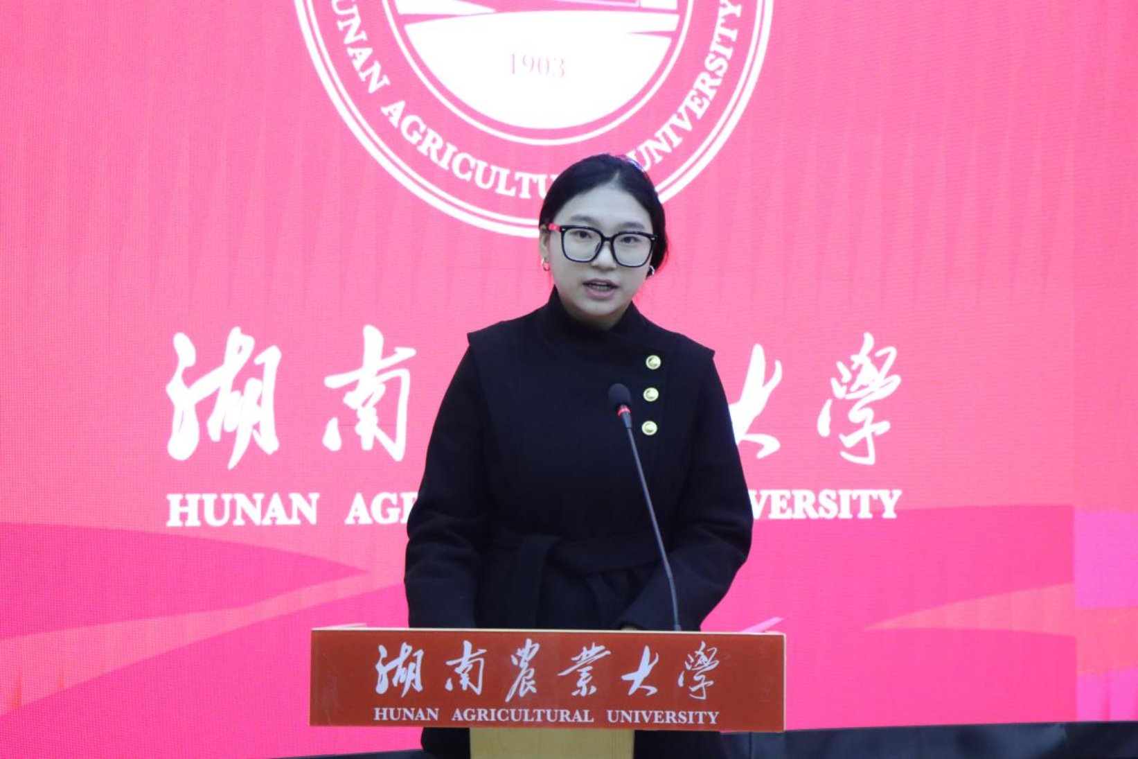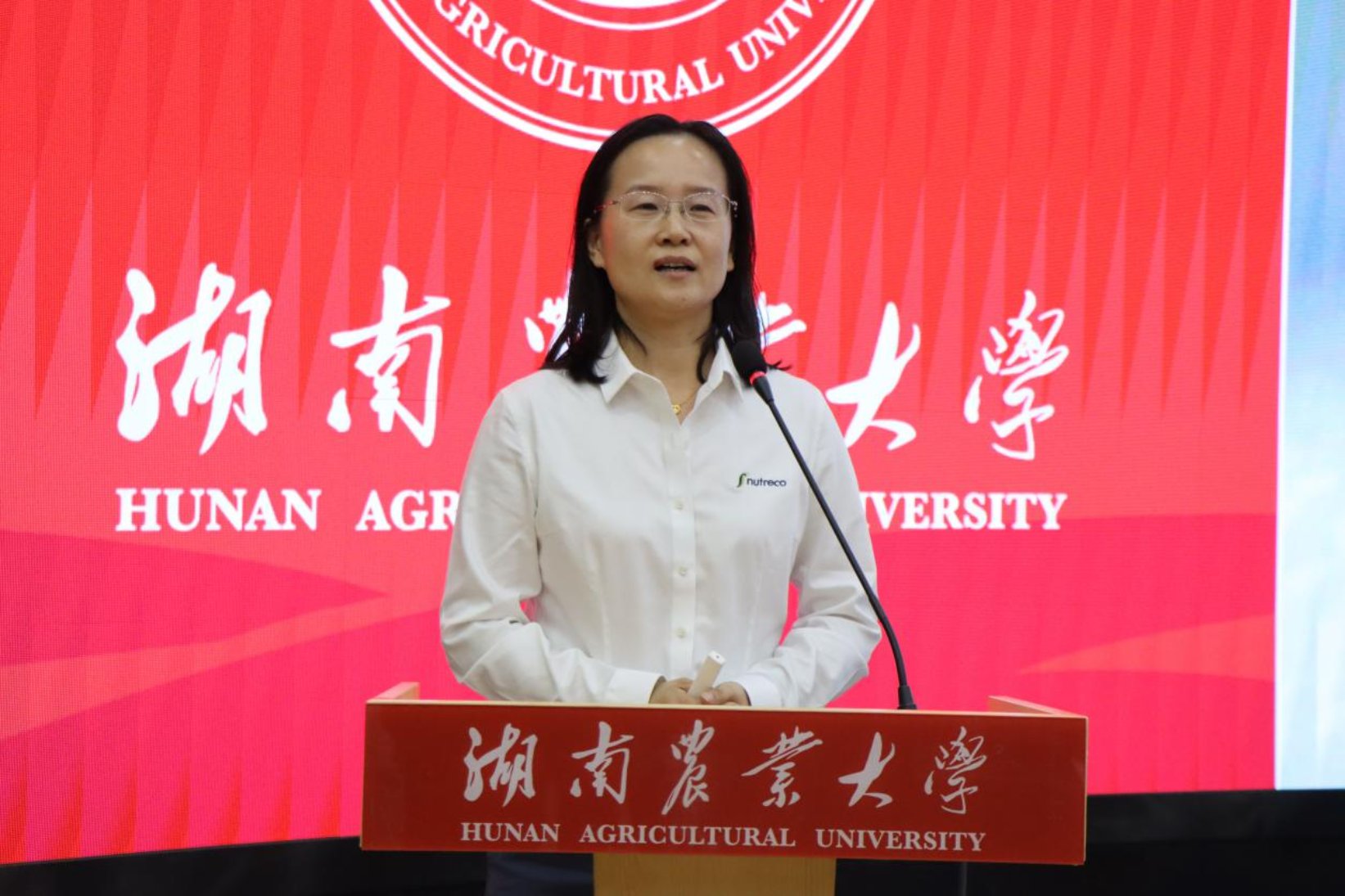 王海英代表泰高集团致辞。她系统介绍了泰高集团的发展历程、全球业务布局及核心使命。她指出,泰高集团始终关注营养、生态与经济的协同发展,致力于通过技术创新与智能化方案,为养殖业提供可持续的营养解决方案。王海英表示,泰高集团高度重视与高校合作,期待更多优秀学子加入,共同推动行业进步。在集团介绍环节,王海英进一步阐释了泰高在动物营养、水产饲料及数字养殖等方面的战略布局,展示了其在全球研发网络、可持续发展实践以及青年人才培养计划等方面的投入与成果。