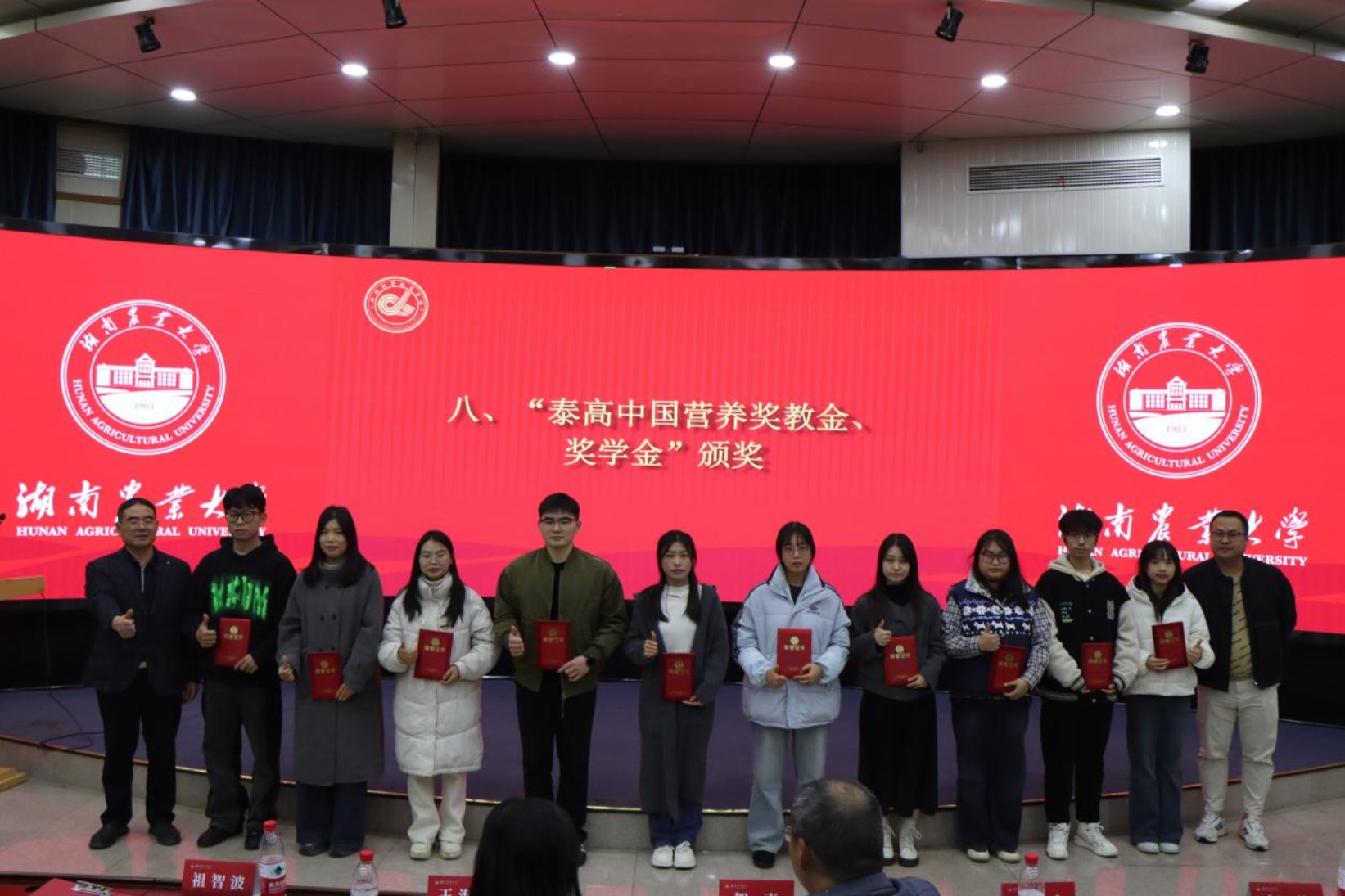 为深化校企协同育人,搭建产教融合坚实平台,助力员工拓展行业视野,明晰职业发展路径,12月3日下午,beats365在生命科学楼国际会议厅举行2025年“泰高中国动物营养奖教金、奖学金”颁奖典礼。泰高集团中国运营总监王海英、泰高集团中国高级技术服务经理朱且专、泰高集团中国湖南工厂人力资源主管罗莉娟、beats365经理贺喜、党委书记祖智波、副经理何俊、党委副书记周军铁、副经理范志勇、公司教师代表、学工办辅导员、全体获奖师生及各班级员工代表参加了颁奖典礼。