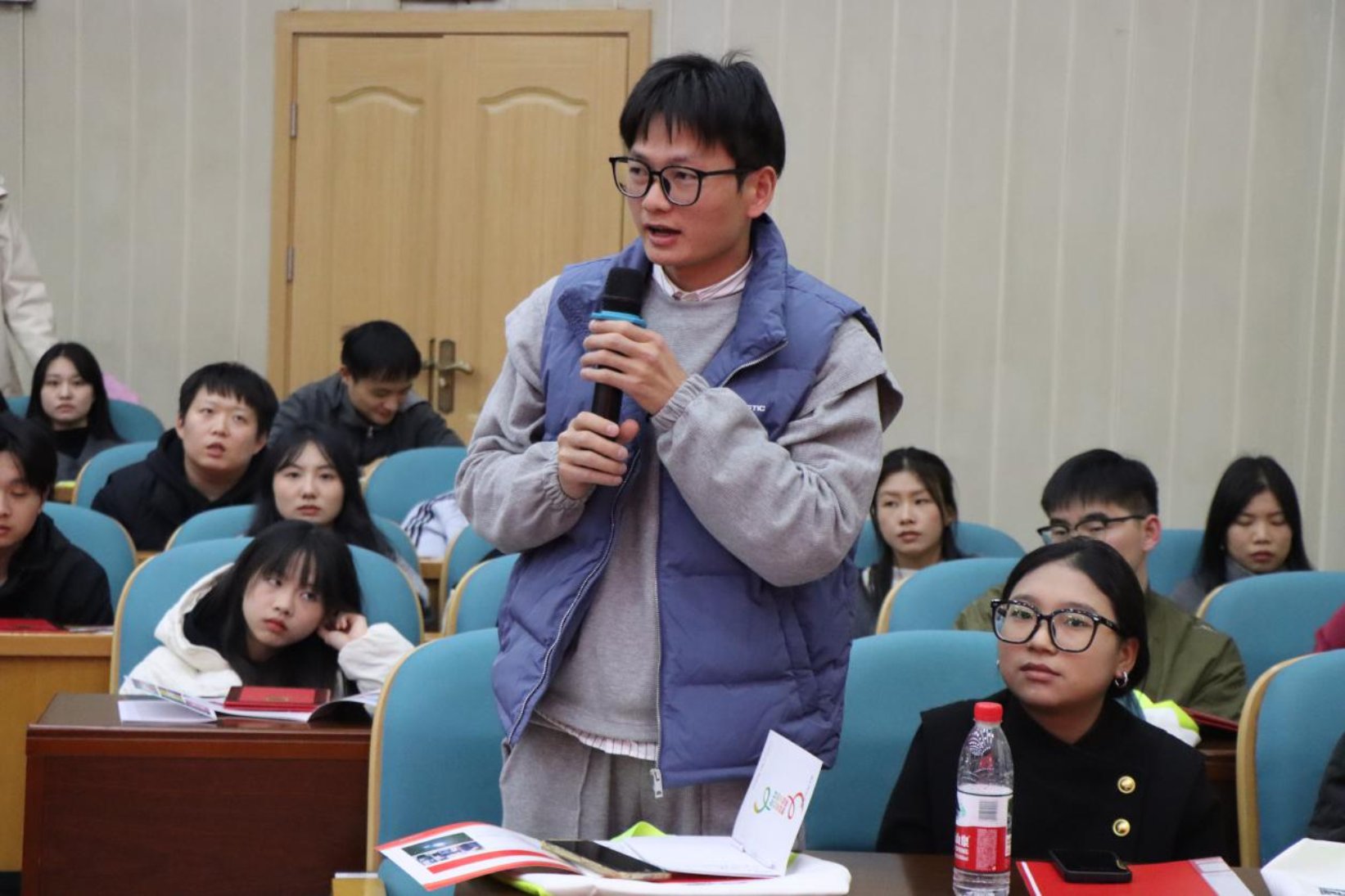 在提问交流环节,现场同学围绕行业技术挑战、校企协同机制、职业发展路径以及工作生活平衡等话题积极提问,嘉宾们结合行业实践与个人经验,逐一予以细致解答,双方问答聚焦实际,互动坦诚,为在场员工提供了贴近行业现状的认知视角。