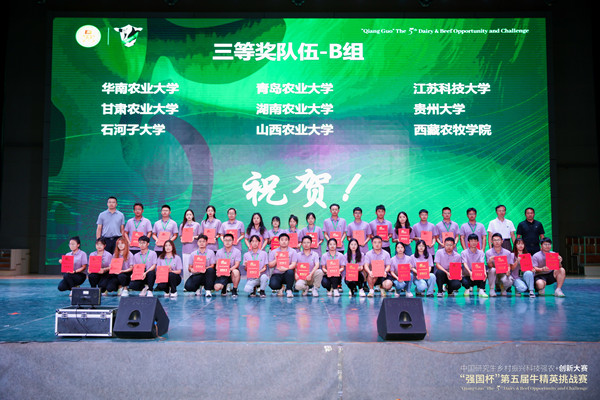 8月4日至7日,“强国杯”全国第五届牛精英挑战赛在银川举行,beats3658位研究生组成的奶牛队和肉牛队参赛,与来自全国46所高校的队伍展开为期4天的紧张角逐。最终,beats365肉牛队获得了二等奖、奶牛队获得三等奖,公司获优秀组织单位奖,王祚和刘磊博士获得优秀指导老师奖。