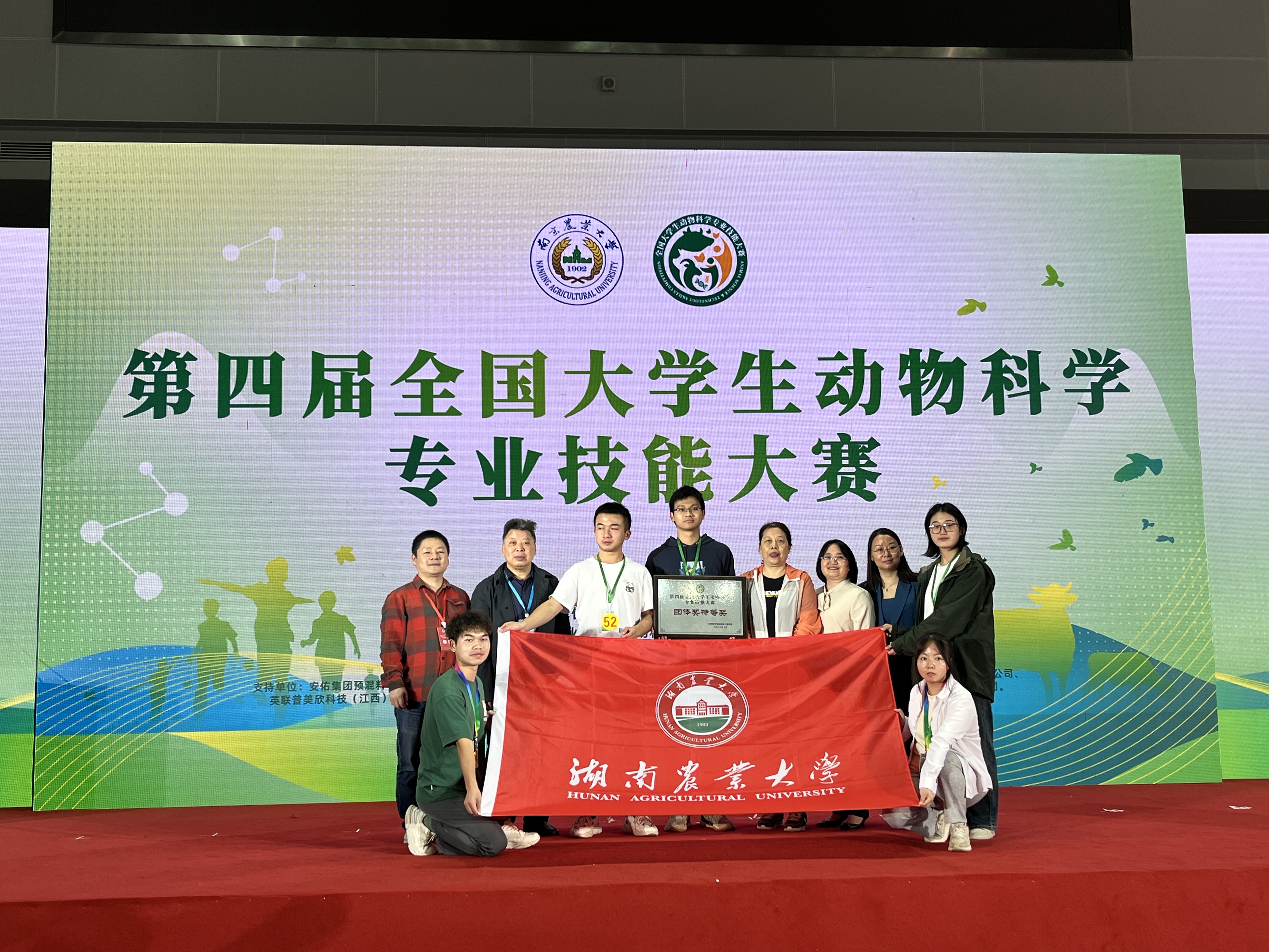 2023年10月27日-29日,第四届全国动物科学专业技能大赛在南京农业大学举办,来自全国各地69所涉农高校,700余名师生参加了比赛。公司牛科、封灿、李京、付鑫琳、邹振洲等五名同学凭借过硬的专业本领和充足的知识储备,经过激烈角逐,顽强拼搏,从参赛队伍中脱颖而出,斩获大赛团体特等奖和两个单项奖一等奖,充分展现了湘农学子的卓越风采。本次大赛设“生态畜牧场规划设计”“饲料原料快速鉴定与掺假识别-掺假鱼粉的鉴定”“鸡精液采集、品质检测及人工授精”和“猪外形评分、活体背膘厚与眼肌面积测定”等四个比赛项目,高凤仙教授、杨玲媛副教授、贺长青副教授和何俊副经理为项目指导老师。