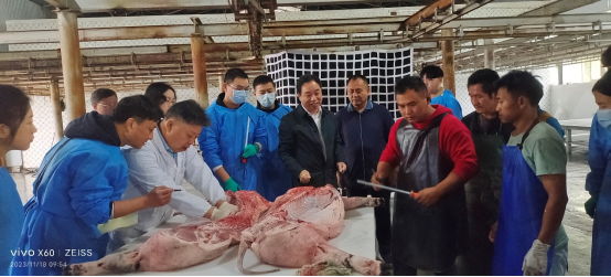 2023年11月18日,在澜沧旺丰屠宰场现场观摩了试验猪屠宰测定后,专家论证会在澜沧拉祜族自治县政府会议室召开。会议邀请了国家畜禽遗传资源委员会委员殷宗俊教授、梅书棋研究员、李新建教授等相关专家,中国工程院院士印遇龙及团队、澜沧县委常委副县长黄永及职能部门相关人员、湘潭市农业农村局吴买生研究员、云南循环农业产业研究院相关人员、beats365特聘教授张勤、经理贺喜、副经理何俊以及陈斌、谭碧娥、马海明、贺长青等专家教授参与了本次会议。