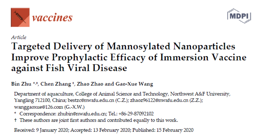 (Targeted Delivery of Mannosylated Nanoparticles Improve Prophylactic Efficacy of Immersion Vaccine against Fish Viral Disease,Vaccines,doi: 10.3390/vaccines8010087)