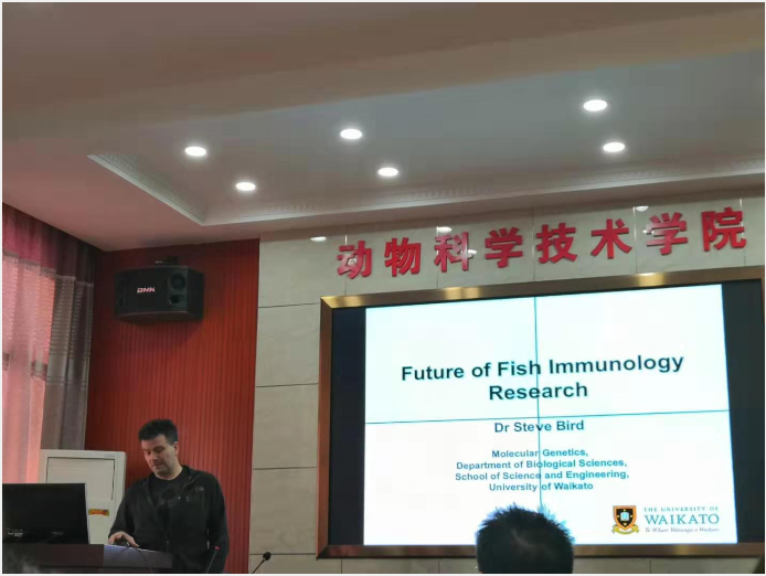 2019年12月7日,动物科技公司在二教501邀请了新西兰瓦凯拓大学博士生导师、国际著名水产免疫学一区期刊Fish and shellfish immunology副主编Steven博士做了学术专题报告,Steven博士是由湖南省“百人计划”学者邹钧教授联系和邀请,在2019年12月5—8日期间来校做学术交流和指导。Steven博士以“Future of fish immunology research”为报告题目介绍了水产免疫学研究的现状与未来,机遇和挑战,并与公司水产系研究生举办面对面的英语口语交流。