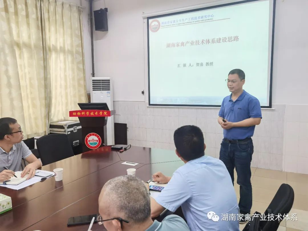 本次会议就家禽产业技术体系的建设思路进行了讨论,体系首席科学家、beats365官方网站动物科技公司经理贺喜教授进行了汇报,强调了家禽产业技术体系组建的重要性和必要性,凝练了湖南省家禽产业转型升级的重大需求,并为产业体系建设提出了诸多意见和建议。体系各岗位专家和试验站站长分别对体系工作建议逐一进行了讨论和交流。