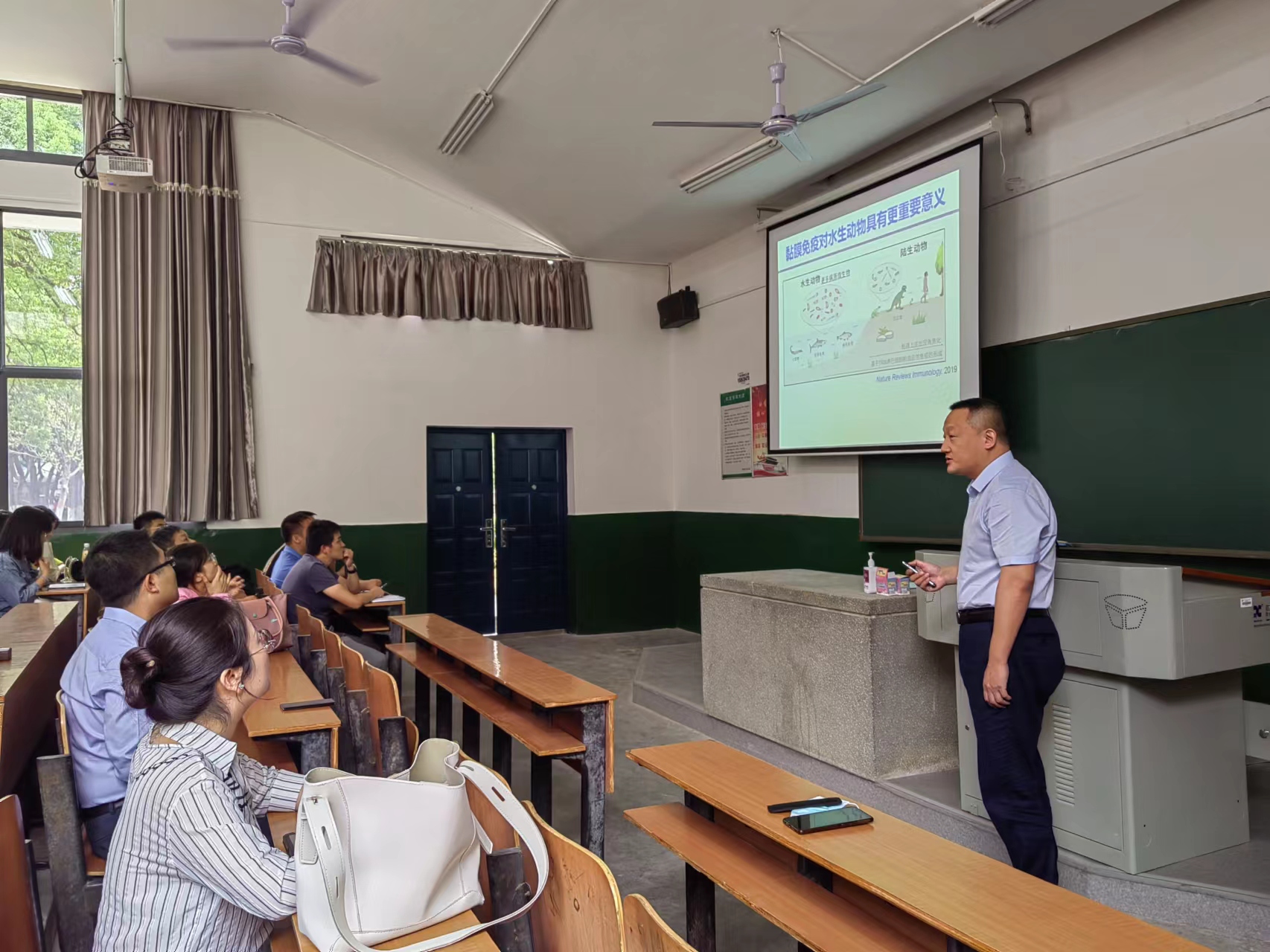 徐镇教授的报告深入浅出,细致精彩,获得公司师生热情响应,与会的老师和同学就鱼类黏膜IgT的抗病毒机制、以及IgT靶向益生菌应用于鱼类黏膜疫苗等相关问题与徐镇教授展开了热烈的讨论交流。