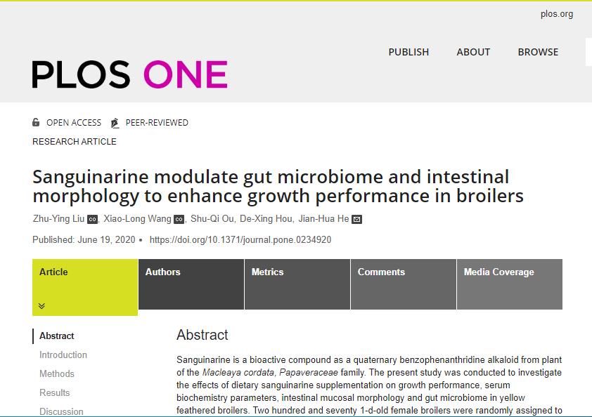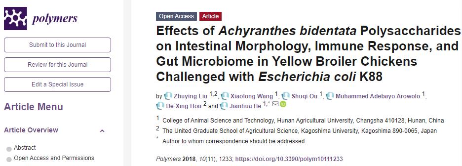 湘约农牧公司团队研究进展第8期:公司贺建华教授团队在牛膝多糖和血根碱促进黄羽肉鸡生长的营养调控研究取得新进展